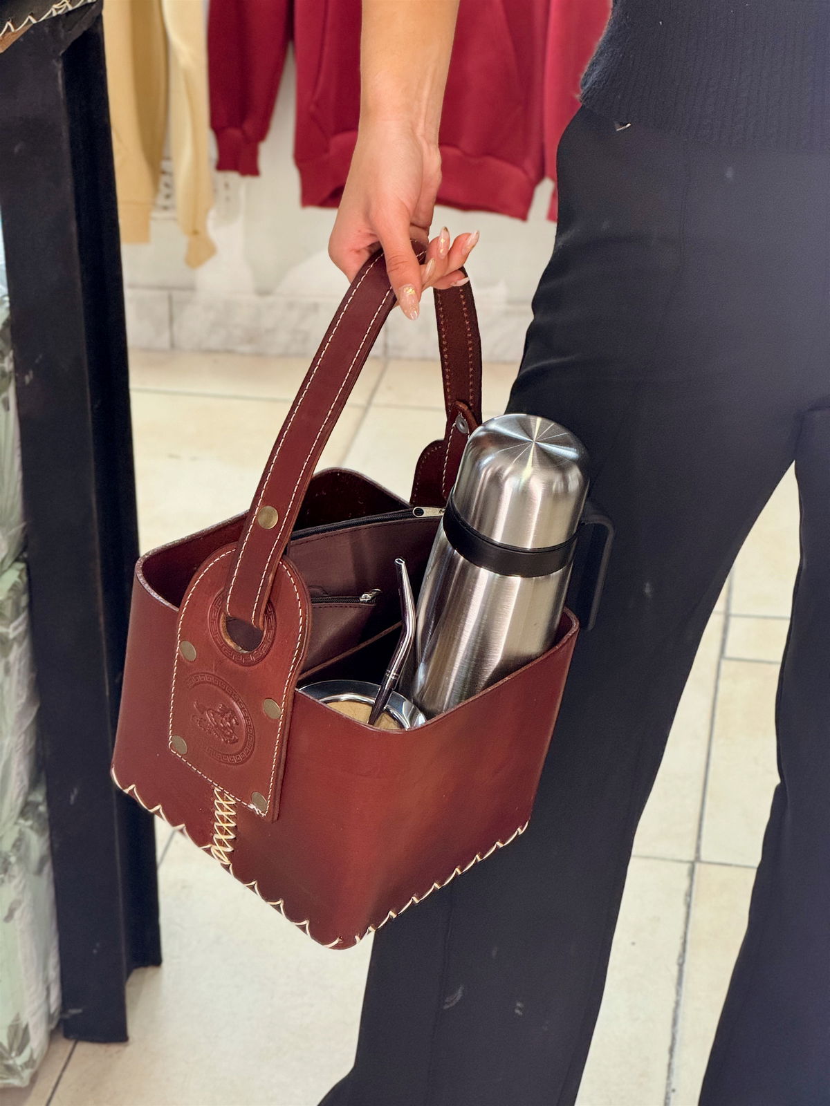 Confeccionada artesanalmente en cuero genuino argentino, esta canasta es perfecta para quienes buscan calidad, diseño y practicidad en un solo producto. Su separador interno permite ubicar el termo y el mate por separado, evitando movimientos o derrames durante el traslado.