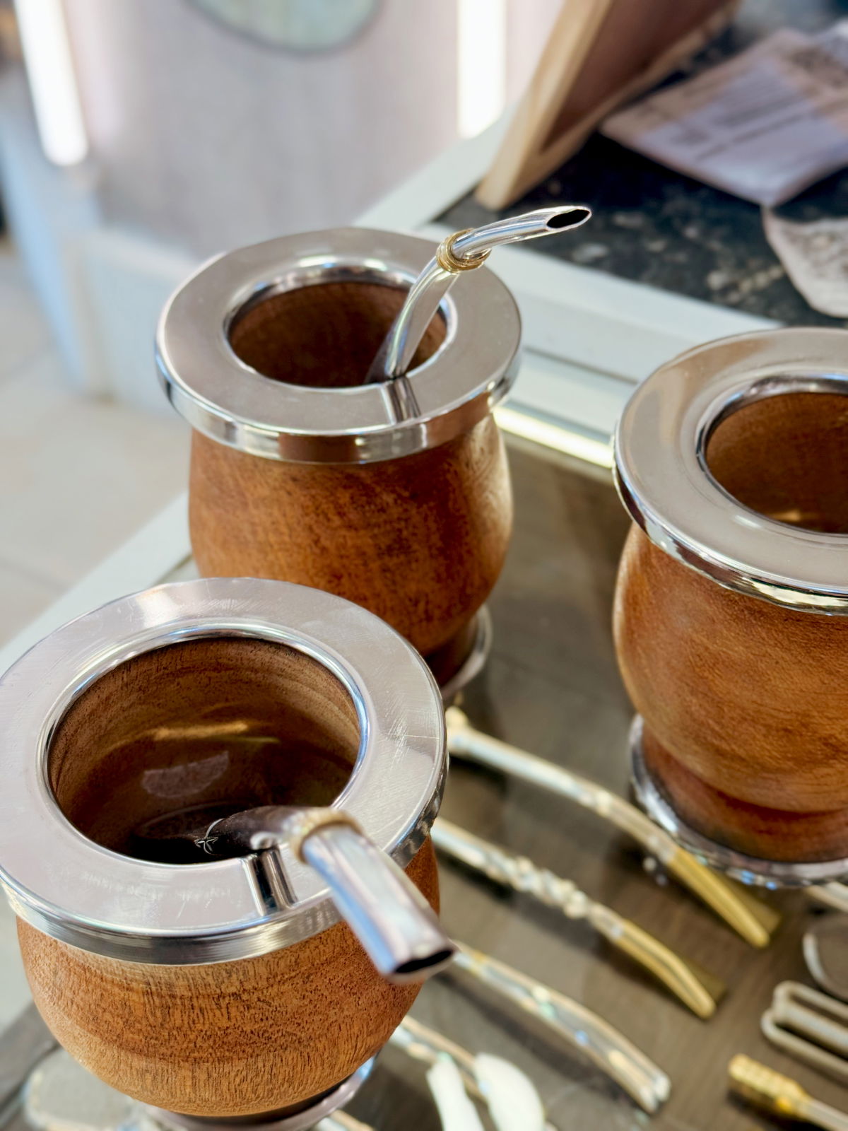 Mate Camionero "Raíces” – Madera de Algarrobo con Virola y Base de Acero Inoxidable 🧉