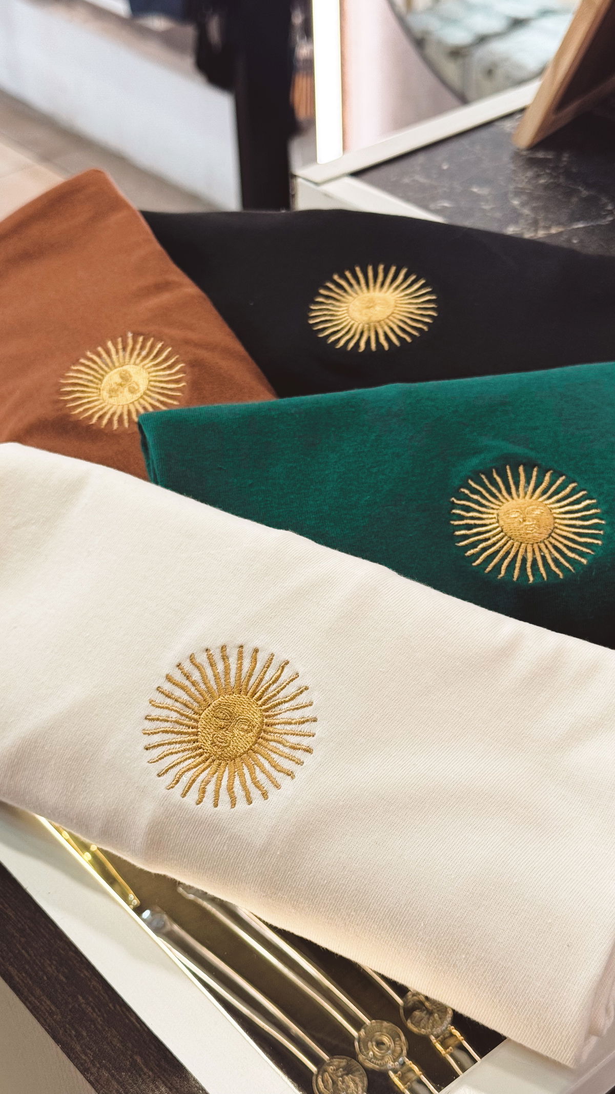 Una prenda que rinde homenaje al orgullo de ser argentinos. Confeccionada en algodón, esta remera unisex combina comodidad, diseño atemporal y un detalle que la hace única: el bordado del Sol de Mayo, símbolo de nuestra identidad nacional.
