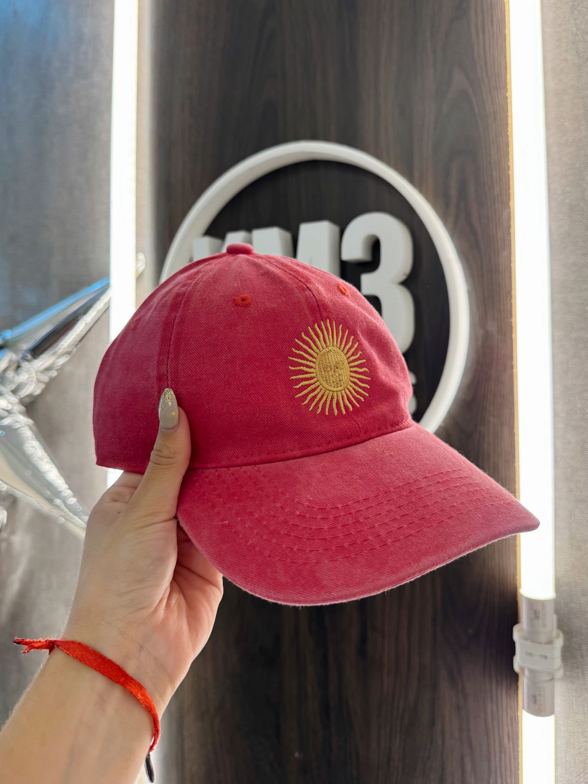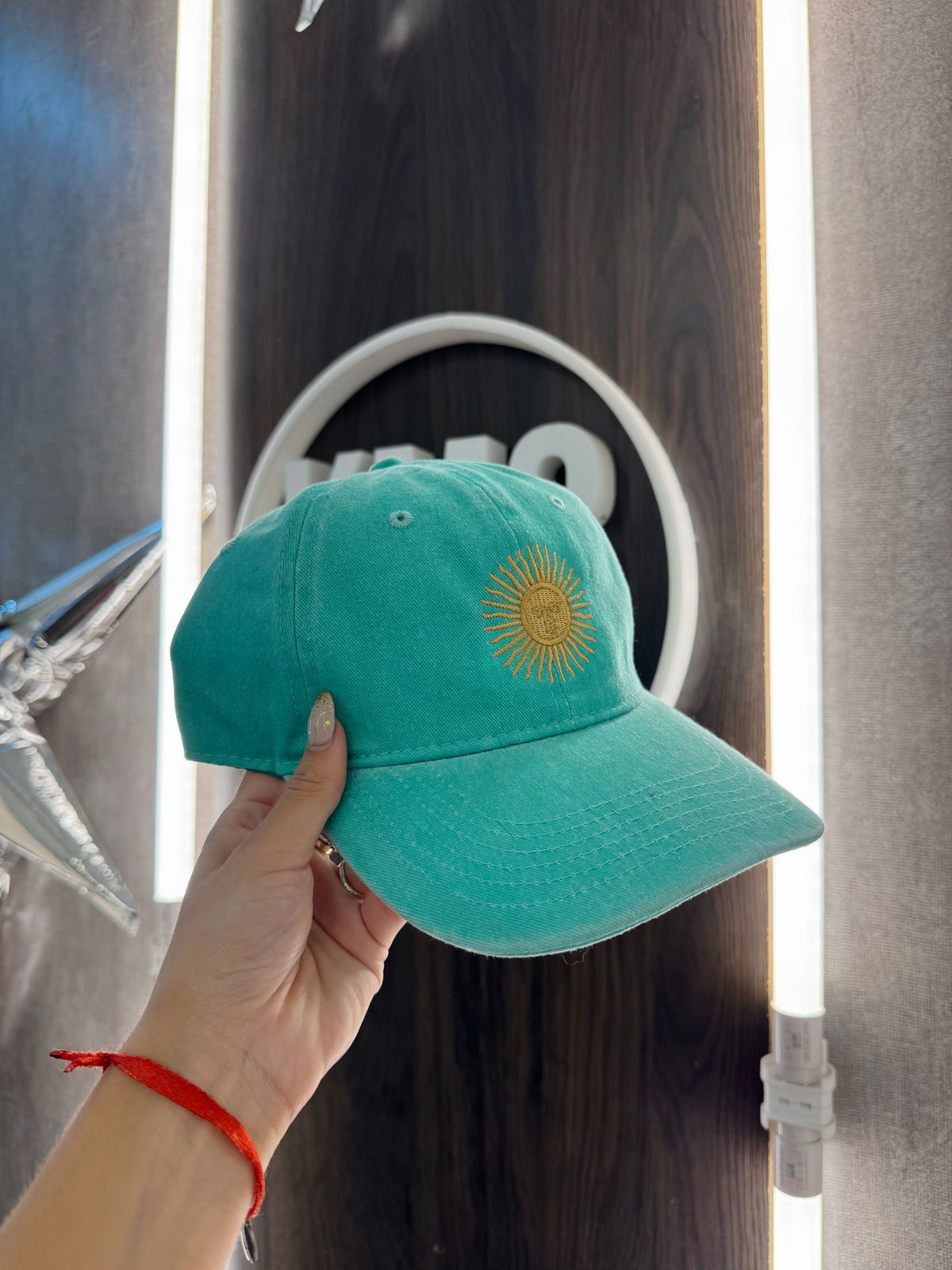 El bordado del Sol de Mayo en el frente resalta sobre los tonos desgastados de la gorra, logrando un acabado único.