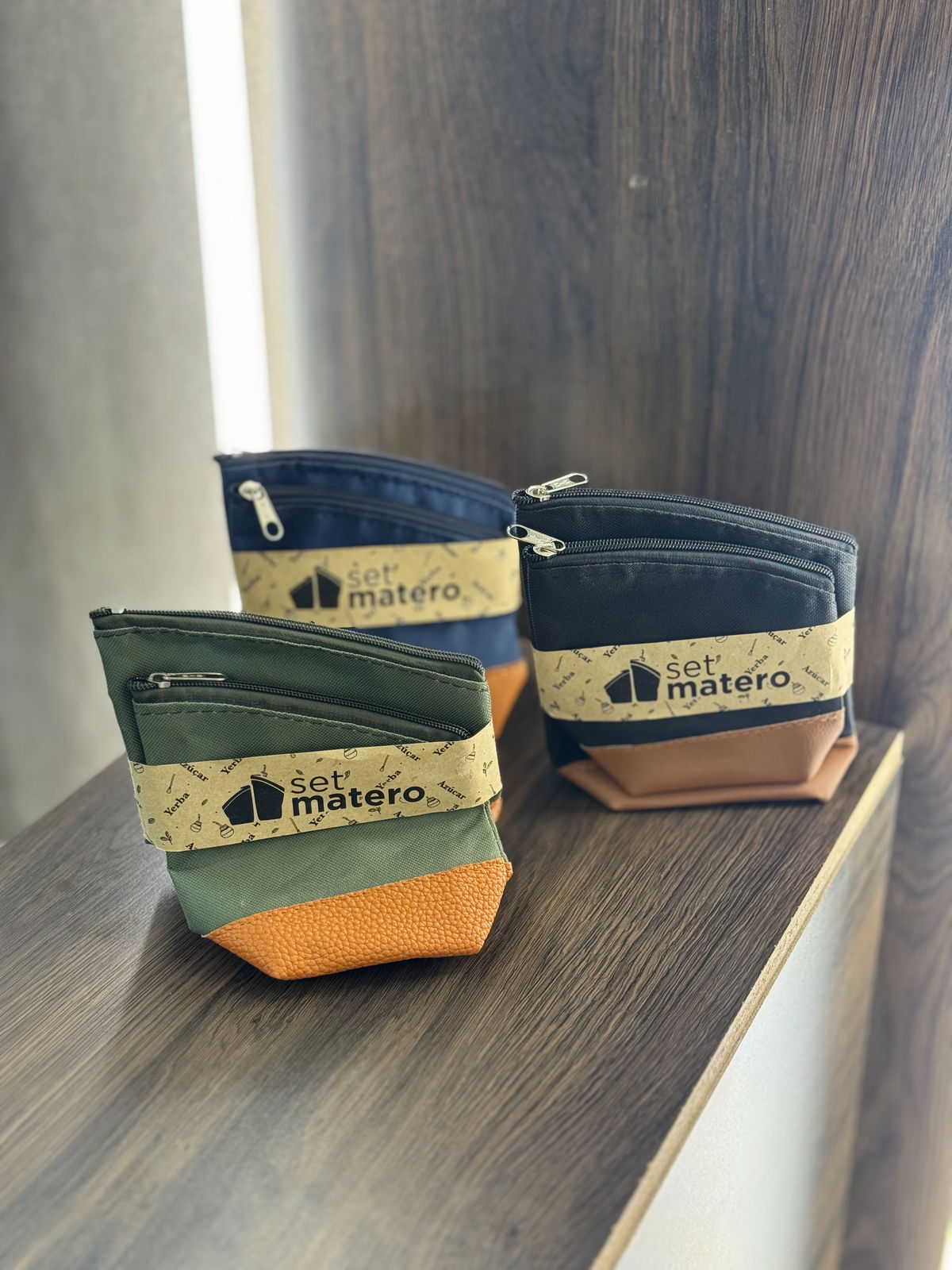 Set porta yerba y azúcar de lona resistente, ideal para el uso diario. Diseño práctico con cierre, fácil de transportar y mantener. Perfecto para mateadas en casa, viajes o regalar